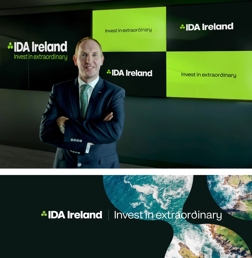 新的爱尔兰投资发展局标志的三个圆,与标志性的三叶草致敬,象征着爱尔兰投资发展局、国家利益相关者和全球公司之间的独特合作伙伴关系,他们共同努力在全球范围内推动竞争力、创新、可持续发展和数字化。充满活力的绿色品牌色和定制字体旨在彰显爱尔兰个性和自信。一切为了更好的服务与链接,链接更好的未来!